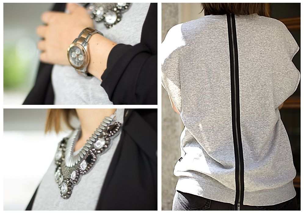 Ich habe es mit Absätzen kombiniert, schwarzen Jeans und einem schwarzen Trenchcoat. Und mit einer meiner Lieblingsuhren von Fossil, in Silben und Roségold, die mit fast allem kombiniert werden kann.