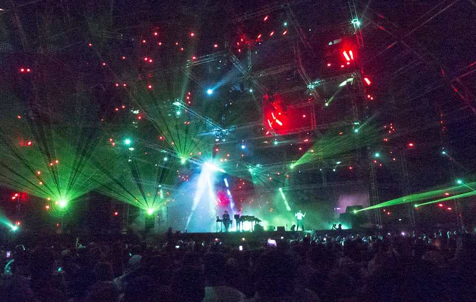 We quickly stop at the outdoor stage, where JackÜ are dj-ing, but my feet want to rest a bit. Back to the „alcohol area“ to our observation point.