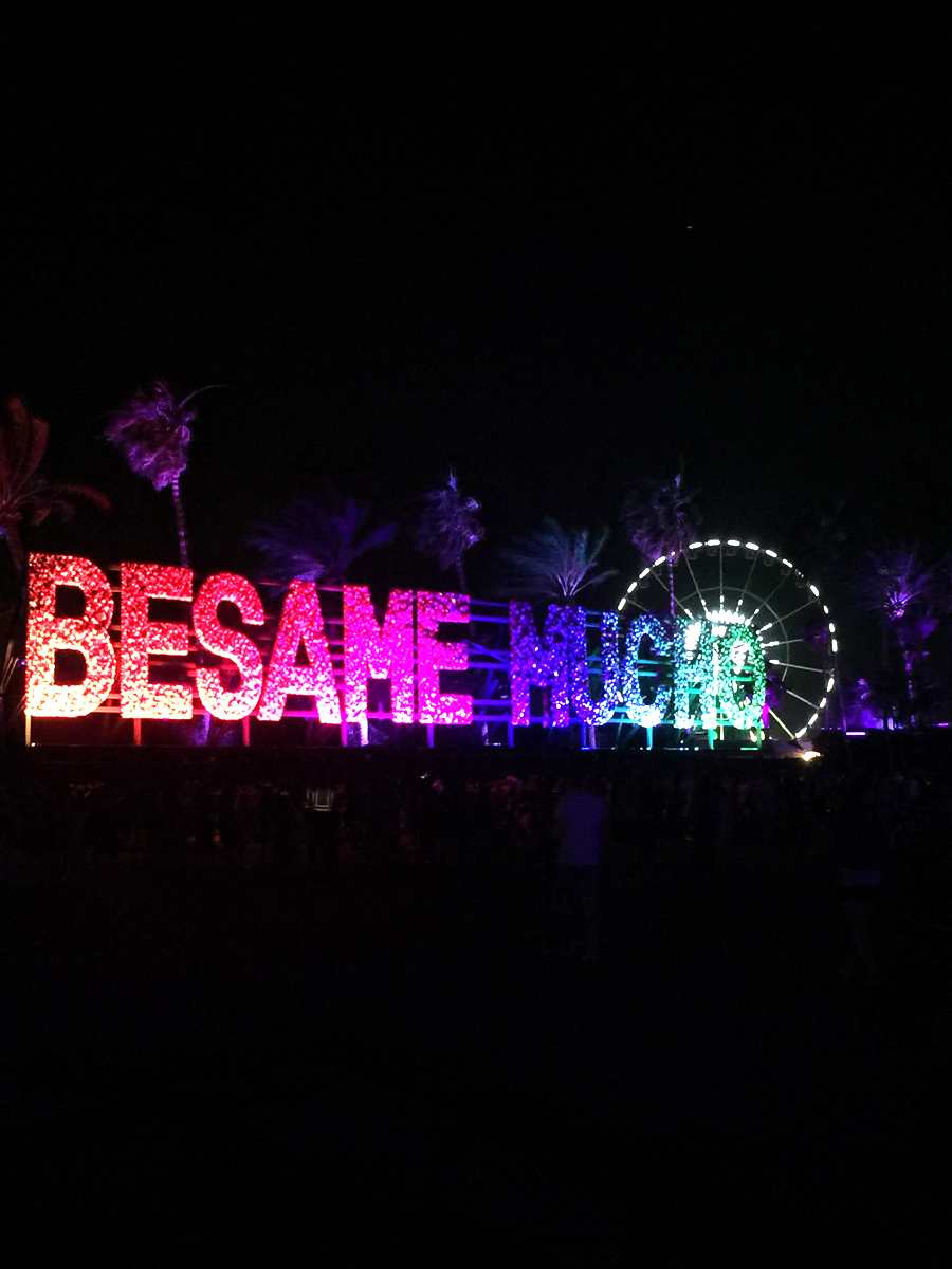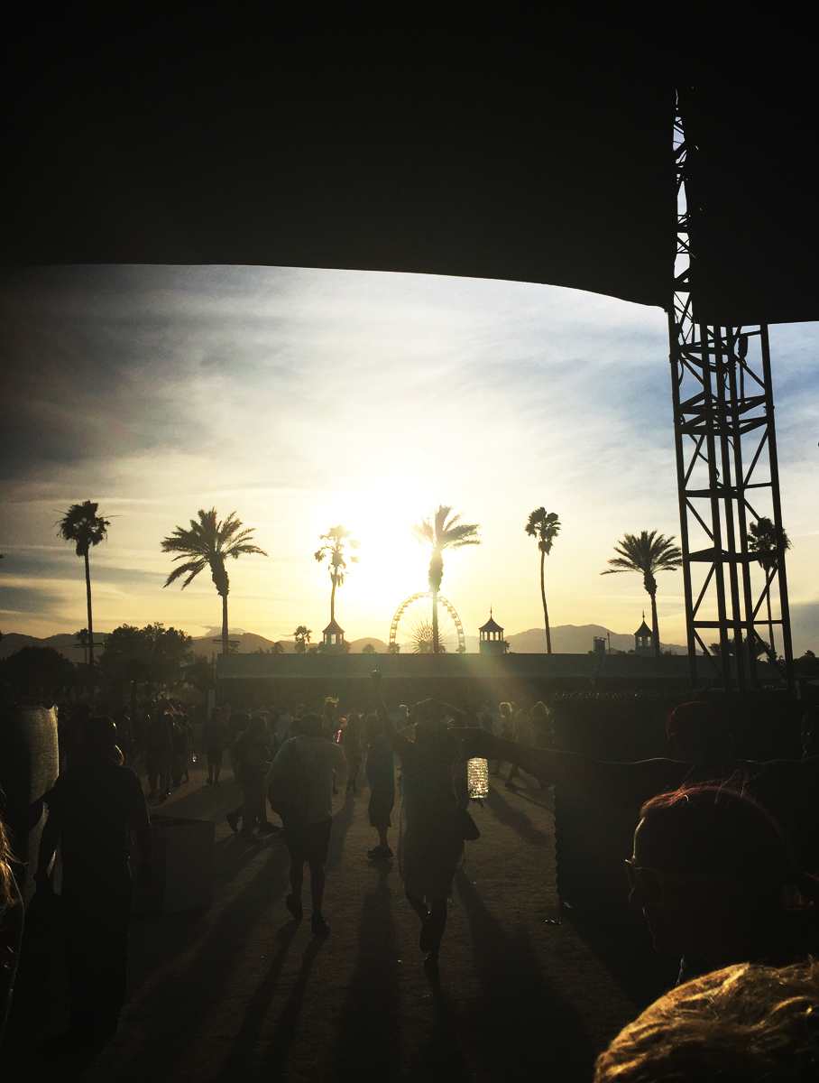 We walk back to the Biergarden with the best view to the Coachella stage, where all the headliners perform.