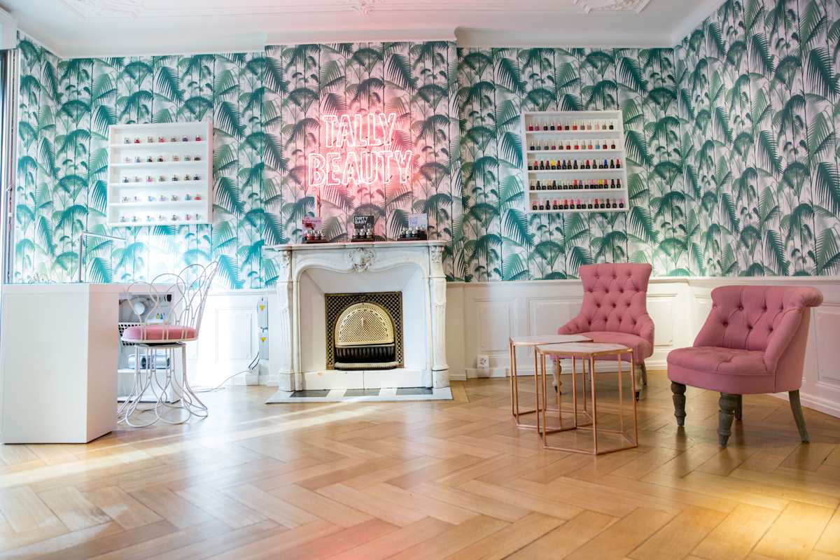Yesterday, there was the pre-opening and I have to admit that they did a great job. The salon is spacious, it looks fresh and charming, with a jungle wallpaper, white walls and the indispensable Tally-pink-details.
