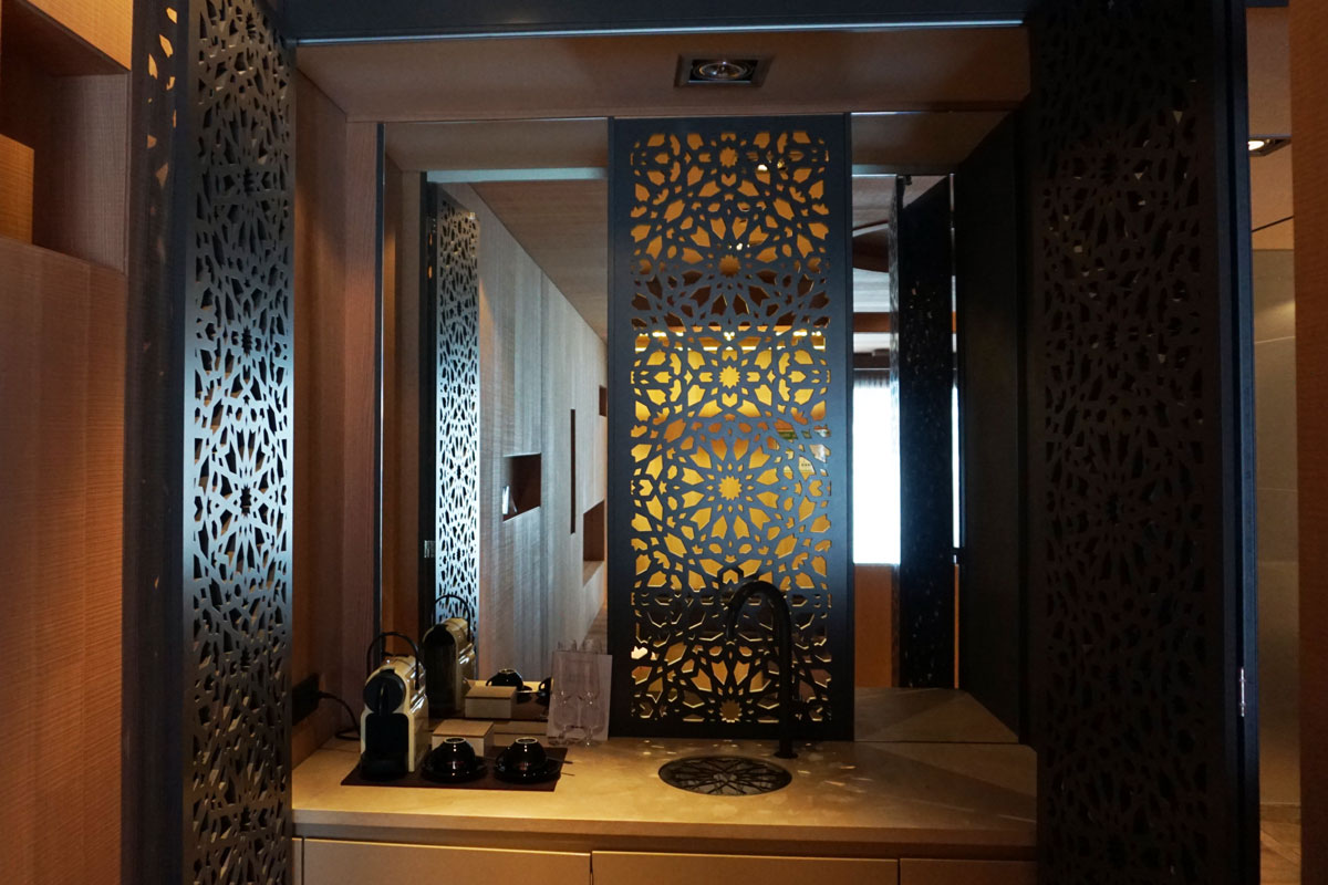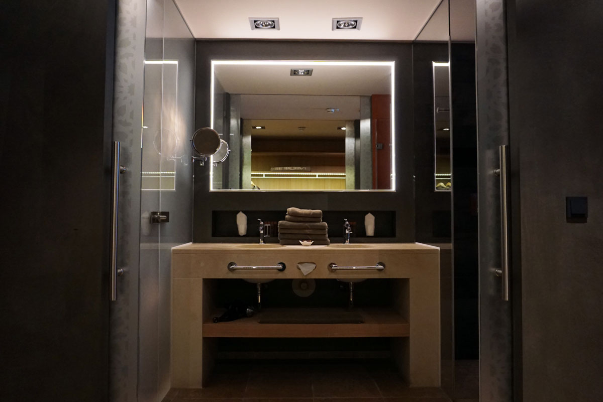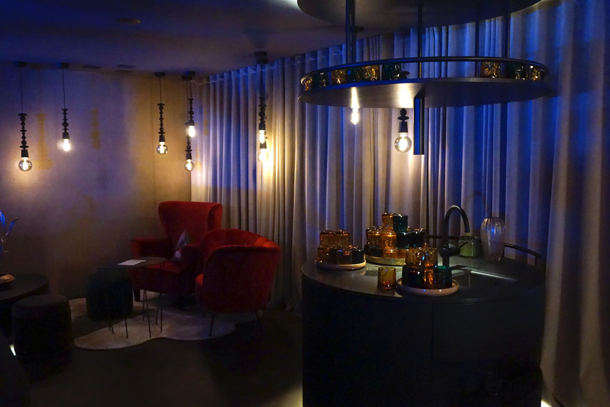 Ich finde die Gestaltung sehr gelungen, es wurde mit verschiedensten Materialien und Texturen wie Sichtbeton, Samt, Holz oder Messing gearbeitet, auch für das Auge eine Wohltat.