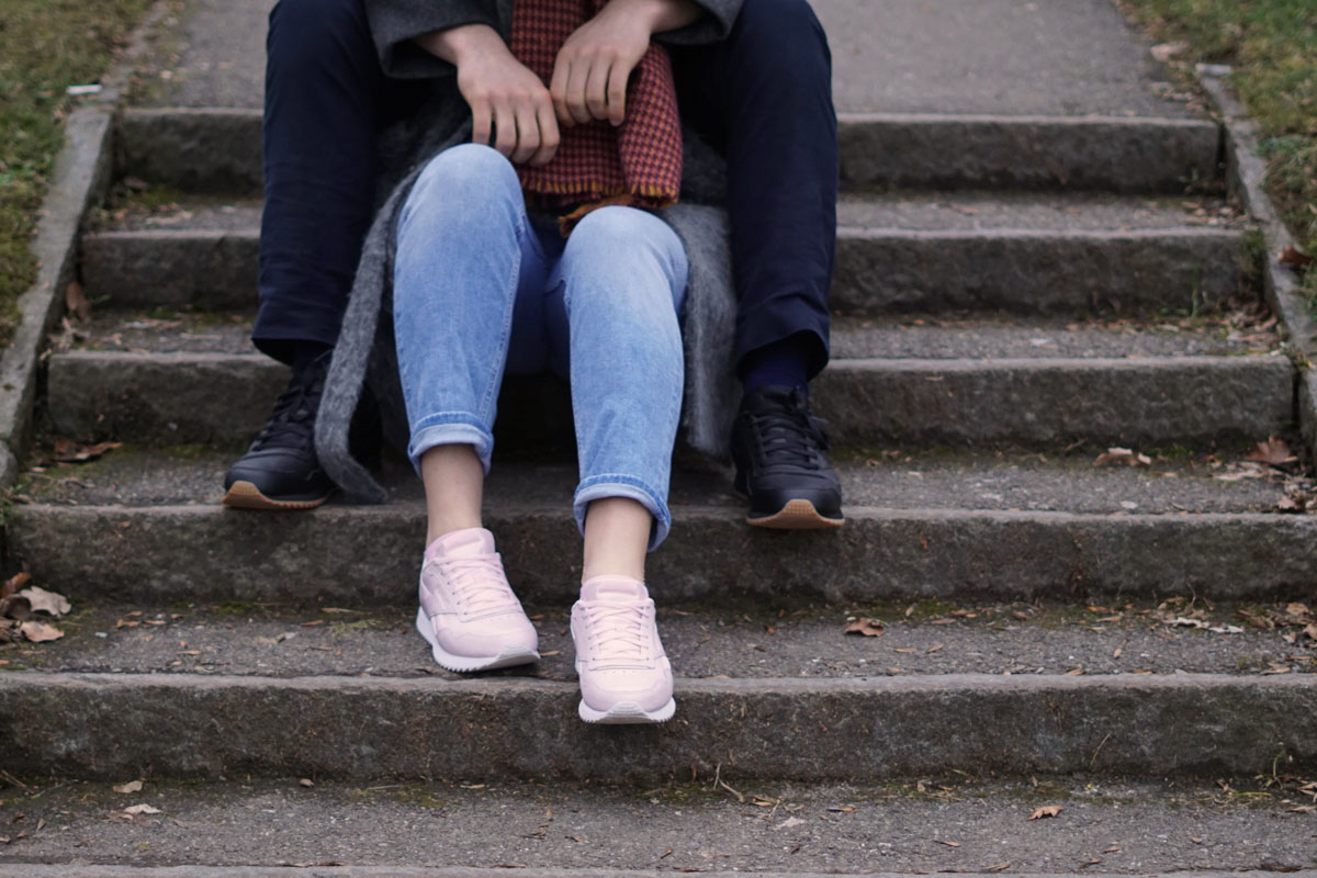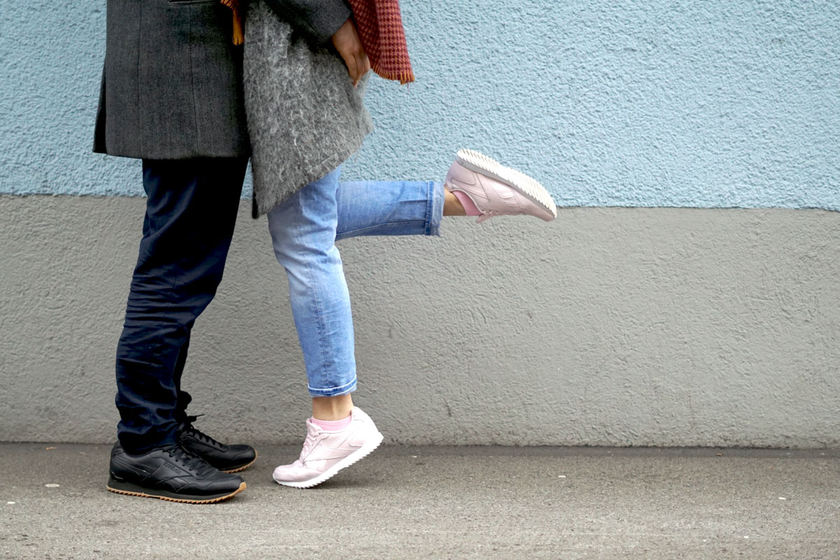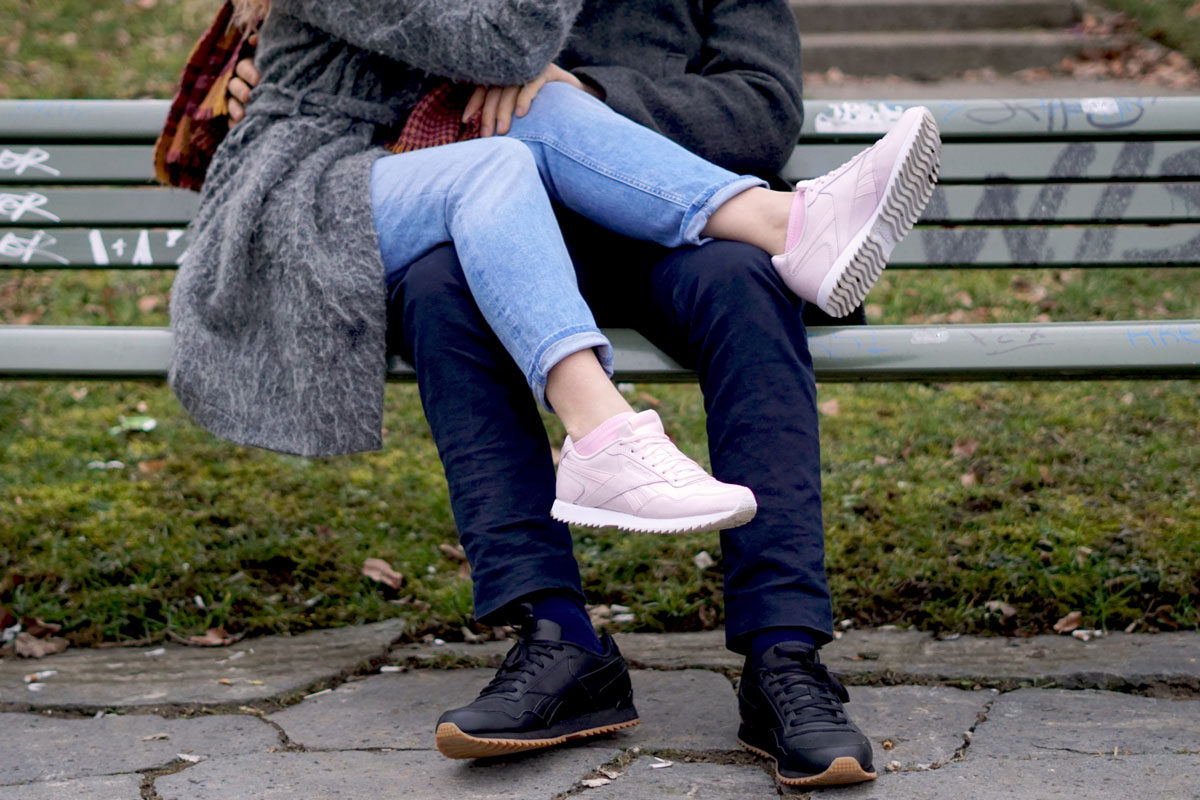 Ich habe mich für einen sporty Partnerlook entschieden, wir tragen nämlich die gleichen Sneakers. Klassische Reeboks von Vögele Shoes, einmal in schwarz, und für mich natürlich in glowingem Babypink.