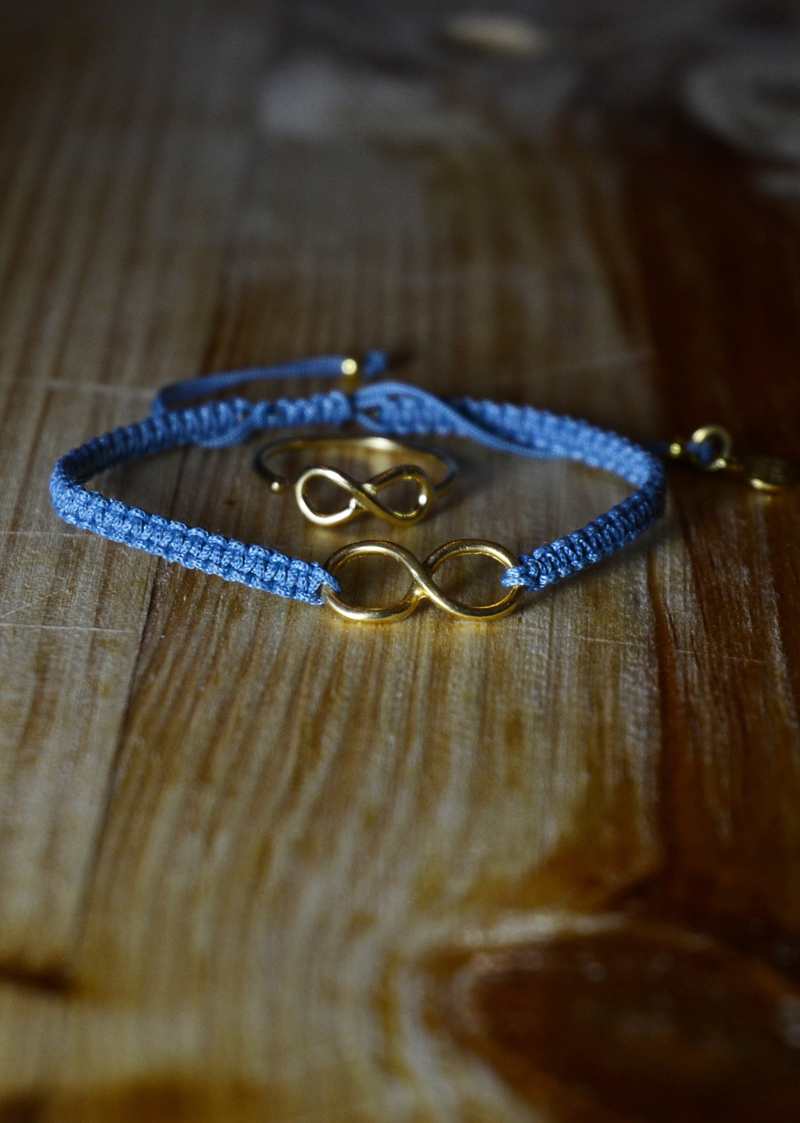 Auch ganz beliebt ist das Infintiy-Zeichen, hier als Ring und Karmabracelet, welches Du zum Beispiel mit seiner besten Freundin teilen kann.