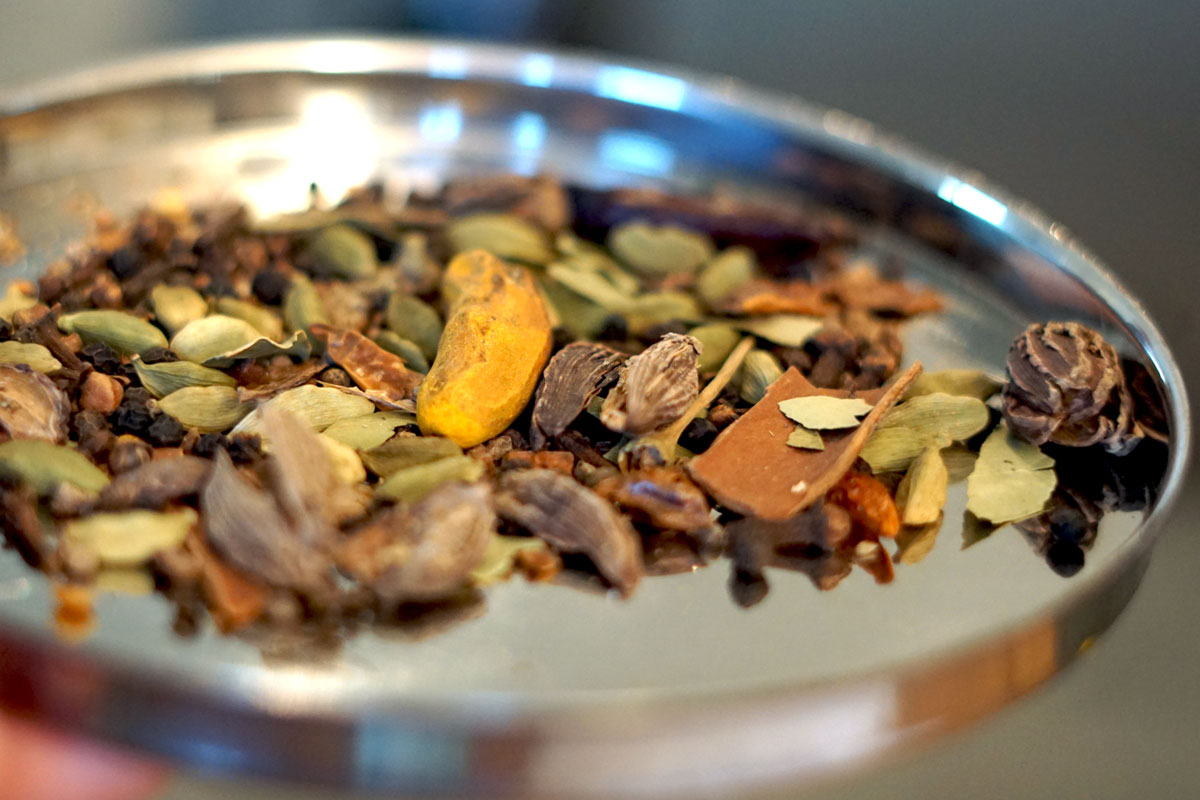 Zuerst gibt es eine kleine Einführung in die Gewürze Indiens. Ich erblasse vor Neid, als ich Ity’s Gewürzschublade entdecke. Zudem klärt sie uns über die grössten Irrtümer des Wortes «Curry» auf.