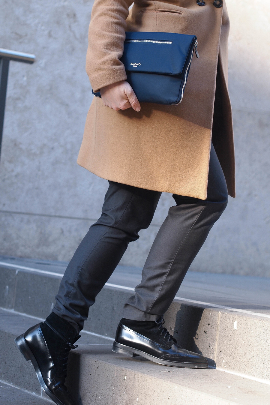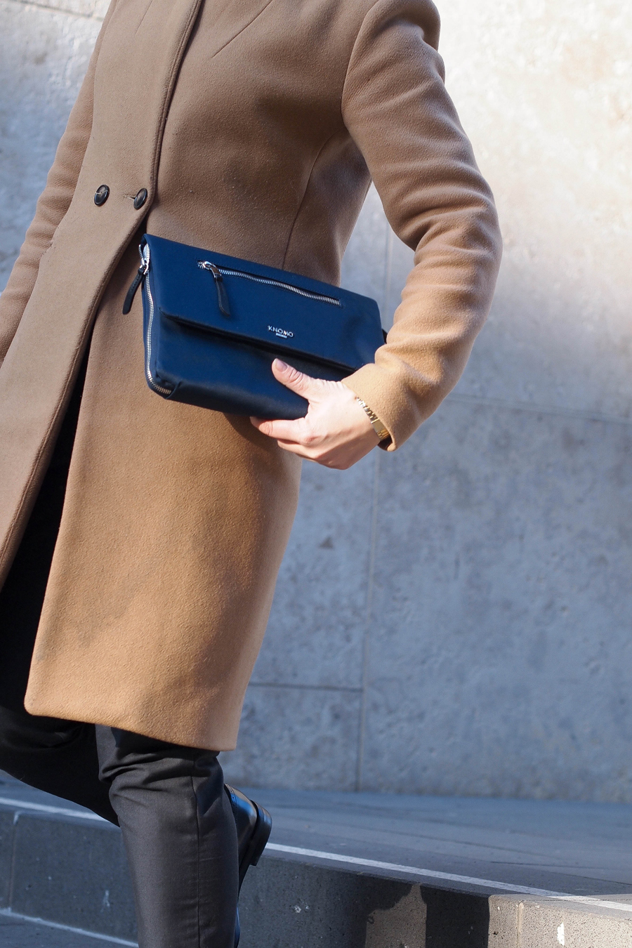 Es sind Designs für Leute wie mich, jung (eine relative Masseinheit), dynamisch, möglicherweise sind sie Freelancer oder Unternehmer, Leute, die viel unterwegs sind, also für sogenannte „digitale Nomaden“. Von aussen her betrachtet, sieht man bei einem KNOMO Design eine schöne Clutch, Aktentasche, Rucksack, einen Shopper oder Tote, aber was die Marke erst wirklich auszeichnet, das ist im Innern versteckt: eine volle Ladung von organisatorischen Möglichkeiten, Funktionalitäten und Power! Ja, richtige Power, und zwar in Form eines externen „Power Packs“, mit dem Du Dein Handy, Dein Tablet oder Deinen Laptop aufladen kannst. Ich fühle mich fast ein bisschen wie James Bond; wer würde hinter dieser schlichten und edlen Clutch denn so ein grosses Potential vermuten?!