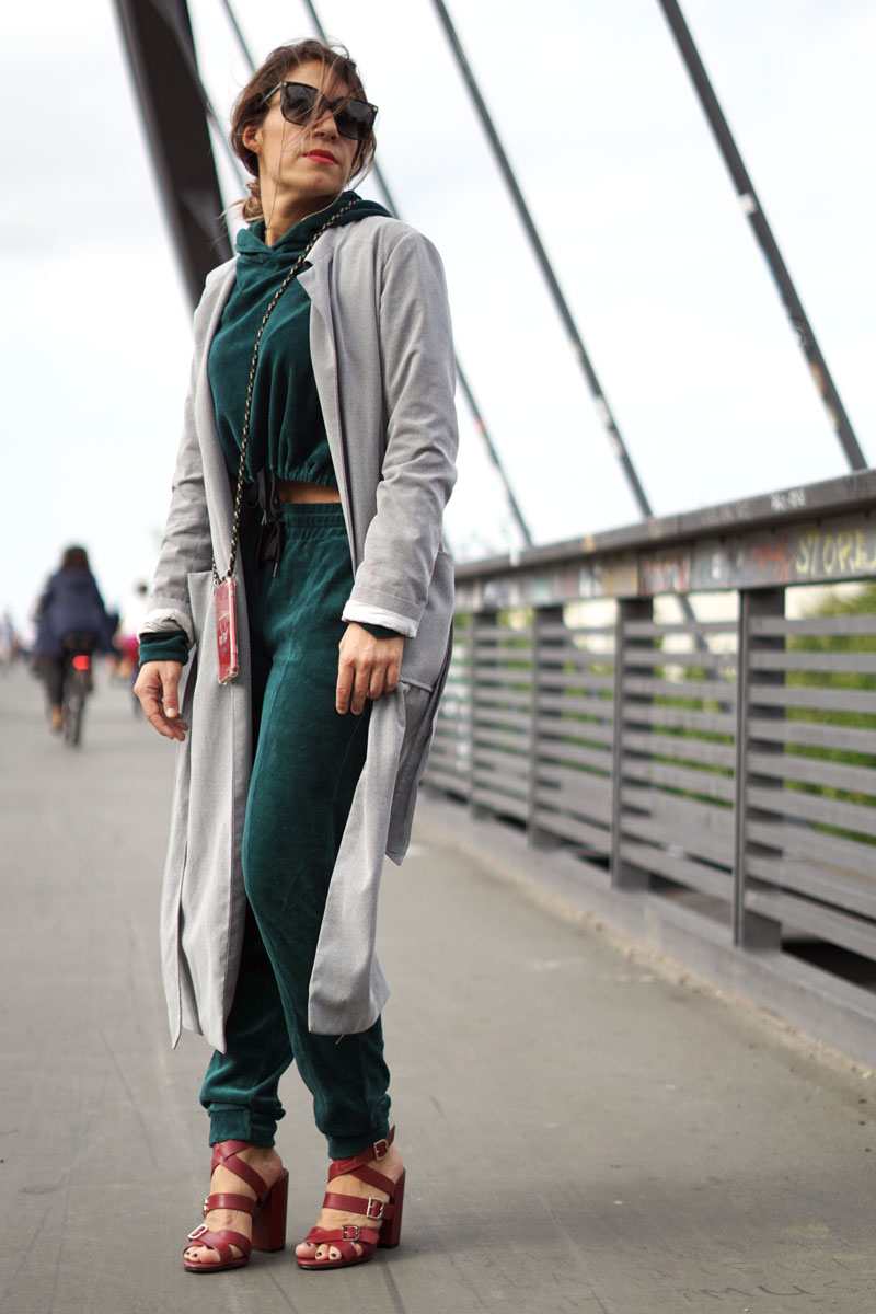 Bei diesem Look habe ich mich für elegante Schuhe von Brooks Brothers entschieden, einem Basic-Mantel von Ann&Line (den man notabene wirklich mit ALLEM kombinieren kann), und einem sporty Zweiteiler von Year of Ours, gefunden bei Sport.LES in der Trendfarbe Petrol. Die Accessoires, würde ich behaupten, beinhalten alle drei Komponenten.