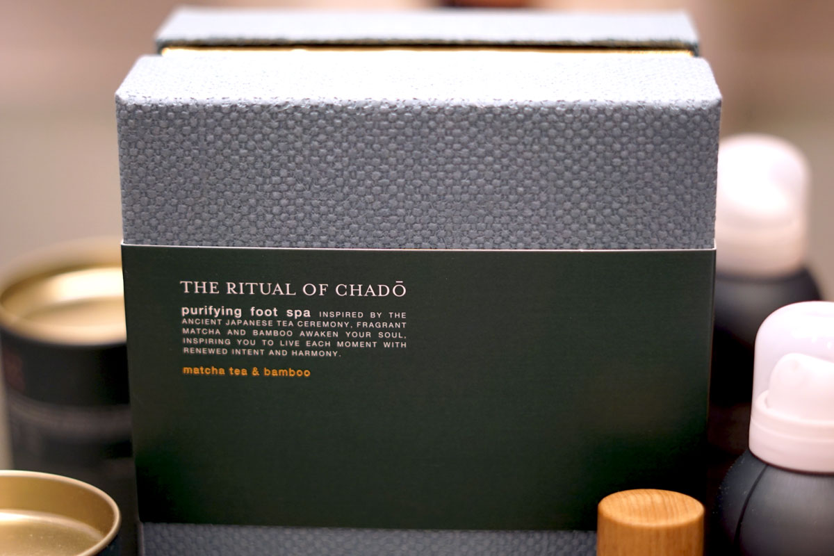 Das ist aber noch nicht alles. Damit die Gelassenheit richtig zelebriert werden kann, offeriert die limited Edition Grüntee in abbaubaren Teebeutel, ein Matcha-Tee-Starterset mit Matchapulver, dem Bambuslöffel «Chashaku, einer Teeschale, der «Matchawan», und einem Bambus-Rührbesen, dem Chasen. So kannst Du zu Hause seine eigene Teezeremonie praktizieren, während Deine Füsse mit dem «Chadō»-Footspa Entspannung finden.