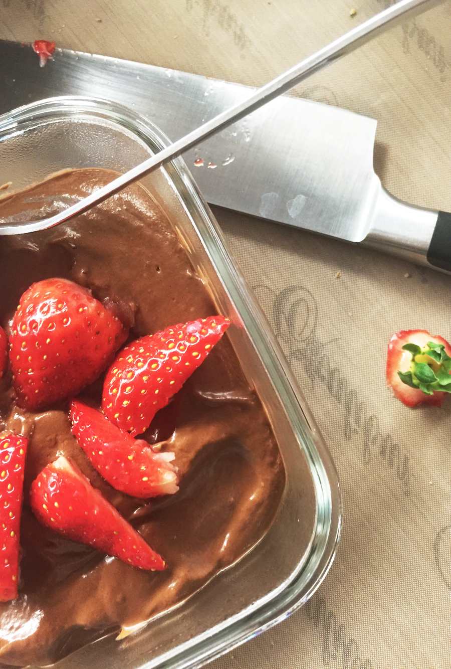 Es war unglaublich was wir in den drei Stunden alles gezaubert haben: Mandelmilch, verschiedene Smoothies, Crackers, Federkohlchips, Hummus, Sauerkrautsalat, Erbsensuppe, Zucchinispaghetti mit der wohl allerbesten Tomatensauce, die ich jemals hatte, sowie eine Matchacrème und Schokoladenmousse zum Dessert.