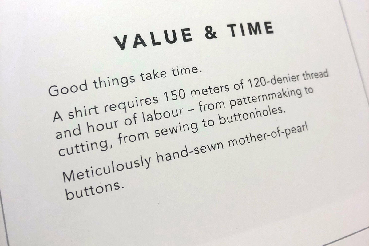 Die Kollektion umfasst gut dreissig Basics mit saisonalen Variationen. Jedes Teil wird in Italien angefertigt, mit hochwertigen Materialien, vieles noch in Handarbeit. Denn Gutes braucht Zeit.